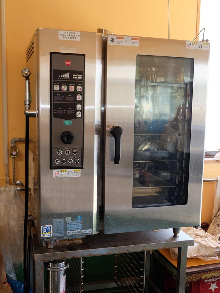 そこで、復興支援事業の助成金を利用して、焼き魚などを調理できるスチームオーブン、少量、単品ごとに小分けして真空包装できる密着真空包装機、少量でも効率よくシラスなどをゆでることのできる回転式蒸気釜を購入。